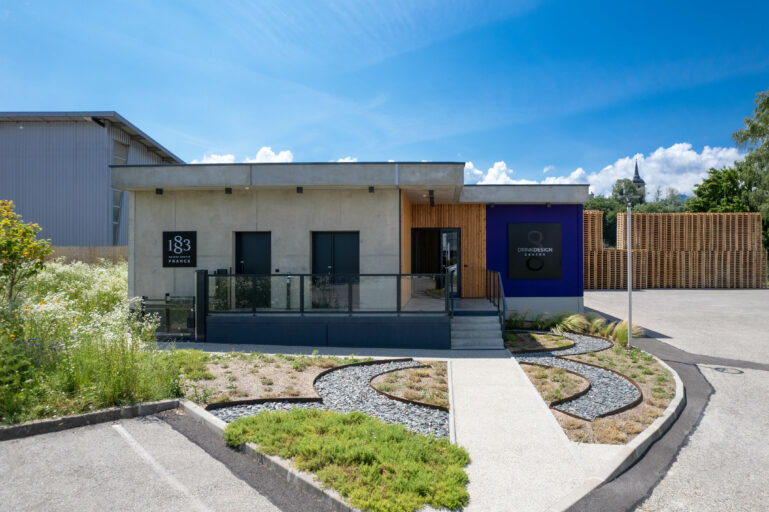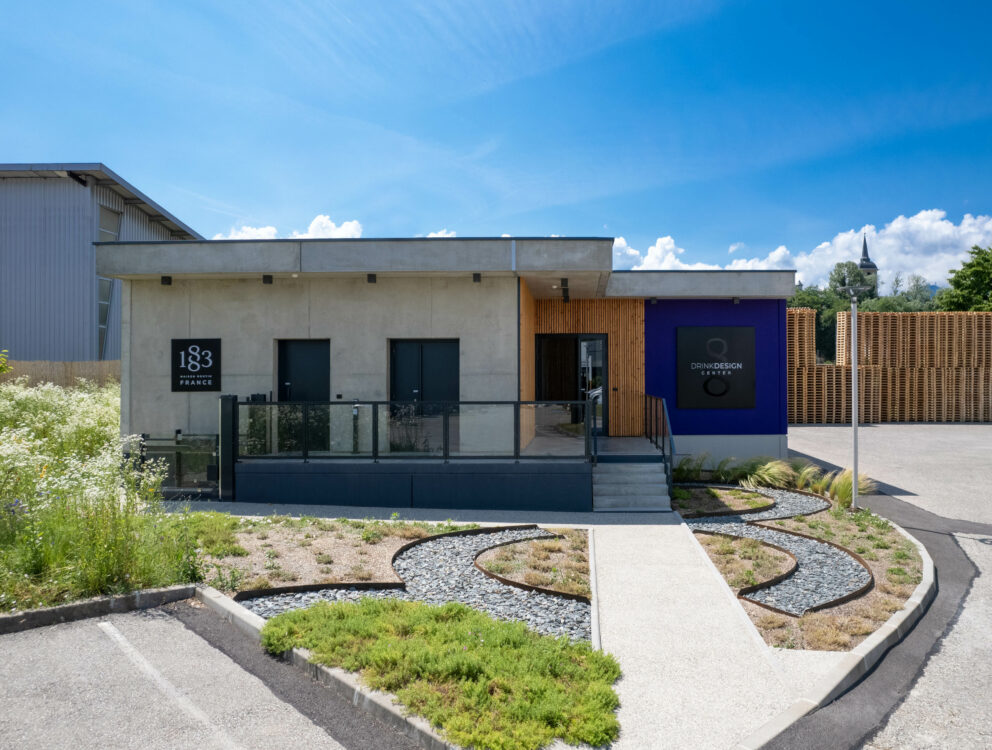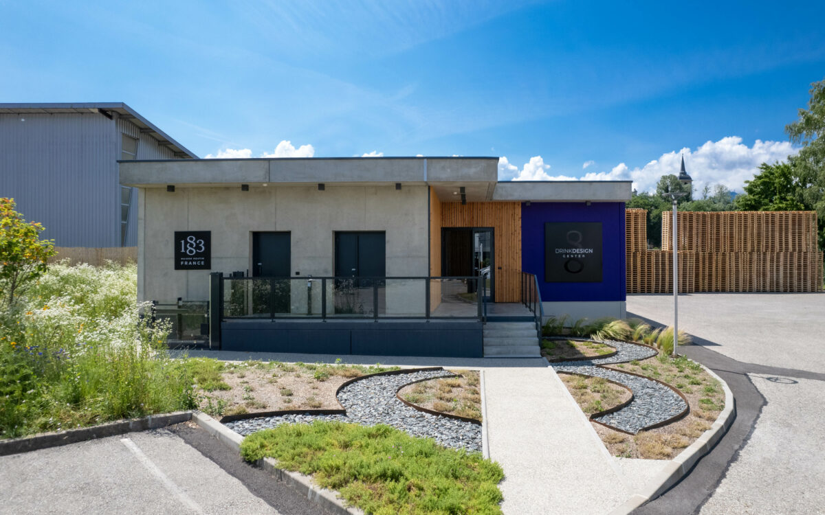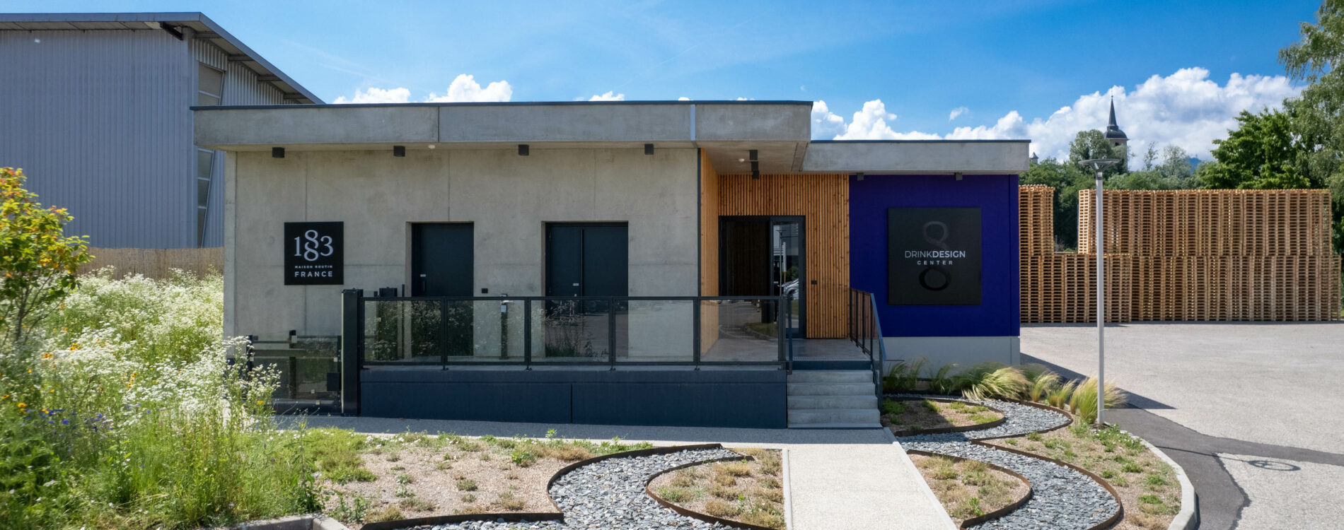 Situé sur le site du siège social de Maison Routin, le bâtiment doit symboliser l’entreprise et plus particulièrement sa marque 1883, sirops dédiés aux professionnels barmen & baristas qui rayonne à l’international. Ce bâtiment a pour vocation d’accueillir des étudiants venus du monde entier et les former au Drink Design à la Française.